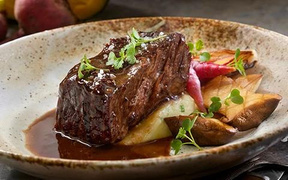 This historical restaurant has served as a Boston landmark for over 40 years, viewable from the Mass Pike. Traditional steakhouse with a horseshoe bar & fireplace, hearty entrees & classic sides. Also a short walk from our home.
